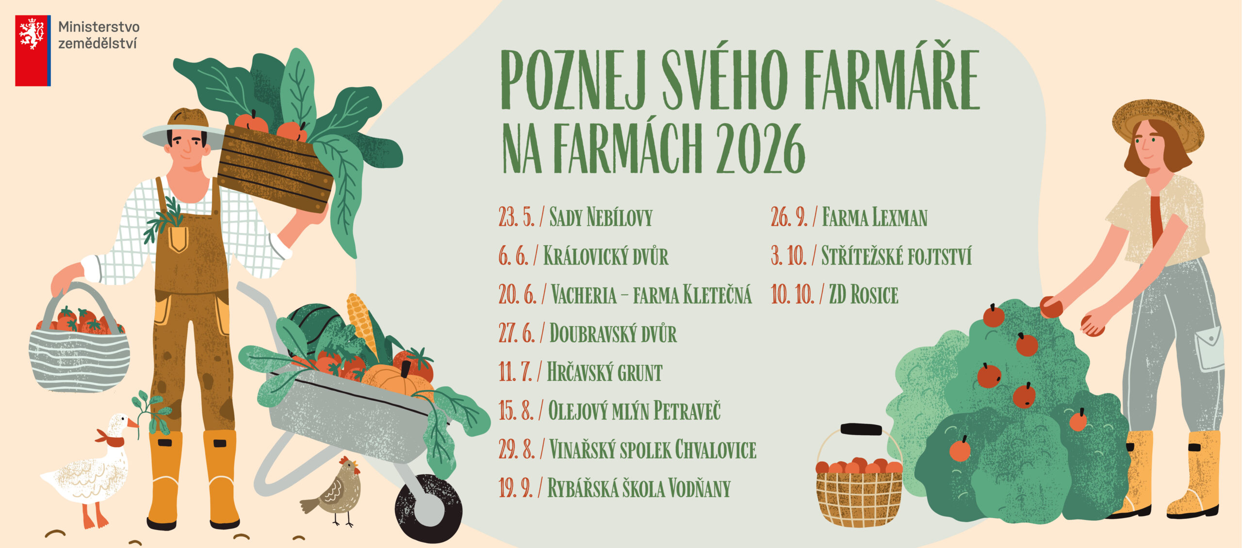 Akce „Poznej svého farmáře 2026“ se i díky vašemu velkému zájmu opět uskuteční přímo na farmách. Stejně jako v předchozích ročnících půjde o jednodenní akce, které budou vždy propojeny s konkrétní farmou v dané lokalitě.